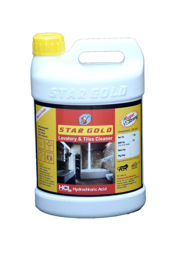 Star Gold Lavatory & Tiles Cleaner, formulated with Hydrochloric Acid (HCl), is a special-grade cleaning agent designed for bathrooms, tiles, floors, latrines, and urinals. It delivers a super-strong clean for a sparkling finish.